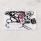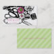 Notions de couture de style peu précis noir et blanc d'amusement avec la pelote à épingles rose et verte de tomate et de fraise et la plaque signalétique de schmancy de fantaisie sur ce carte de visite ou "fait main avec l'étiquette de cadeau d'amour" pour les métiers, l'ouvrière couturière ou les changements de couture.