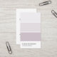 Des cartes de visite verticaux intelligemment conçus imitent l'apparence d'une carte à puce de peinture, avec trois rectangles dans des tons dégradés de lavande lilas grisée. Personnalisez le devant avec votre nom et titre, profession ou nom commercial, et ajoutez vos coordonnées complètes au verso. Un choix chic pour les professionnels du design d'intérieur, les décorateurs et les peintres. Pour modifier la couleur des puces de peinture, cliquez sur "Customiser" et sélectionnez une nouvelle couleur arrière - plan dans la palette, ou entrez un code hexadécimal personnalisé. Les couleurs seront automatiquement mises à jour dans trois nuances de coordination.