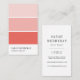 Des cartes de visite verticaux intelligemment conçus imitent l'aspect d'une carte à puce de peinture, avec trois rectangles dans des tons sombres et dégradés de blush, pêche et corail. Personnalisez le devant avec votre nom et titre, profession ou nom commercial, et ajoutez vos coordonnées complètes au verso. Un choix chic pour les professionnels du design d'intérieur, les décorateurs et les peintres. Pour modifier la couleur des puces de peinture, cliquez sur "Customiser" et sélectionnez une nouvelle couleur arrière - plan dans la palette, ou entrez un code hexadécimal personnalisé. Les couleurs seront automatiquement mises à jour dans trois nuances de coordination.
