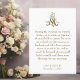 Créez un moment sacré à votre réception de mariage avec notre carte d'invitation à prier pour autel marié. Cette carte magnifiquement conçue invitation vos invités à visiter un autel marial spécial installé sur le lieu pour offrir des prières et des bénédictions pour votre mariage. Avec un message sincère en première personne, la carte dit : "Pendant la soirée, nous vous invitations chaleureusement de visiter notre autel marié et de nous offrir une prière pendant que nous nous embarquons dans ce voyage en tant que mari et femme. Tes prières ont tant de sens pour nous, et nous serions honorés si tu alluguais une bougie et que tu partages tes bénédictions pour notre mariage." Ornée d'une élégante Croix mariale en or au sommet, cette carte ajoute non seulement une touche spirituelle à votre célébration, mais crée également une opportunité significative pour les invités de participer à la foi et à l'amour qui vous unissent en tant que couple. Parfait pour les couples qui cherchent à incorporer leur foi catholique dans leur jour de mariage, cette carte est une belle façon de favoriser des moments de prière et d'approfondir l'expérience de l'unité parmi vos proches.