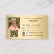 Élevez votre marque avec nos élégants faux cartes de visite d'or avec un magnifique design de papillon d'or. Parfait pour les femmes entrepreneurs, les maquilleurs, les salons de beauté, les designers et les artistes indépendants. Personnalisez et ajoutez votre photo. Chaque carte comprend un générateur de code QR, créant un code unique qui relie votre site Web ou vos médias sociaux. Faites une impression mémorable avec style et fonctionnalité !