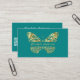 Carte De Visite Papillon turquoise or vert QR code élégant
