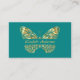 Un arrière - plan turquoise et vert tendance décoré d'un faux papillon doré. Personnalisez et ajoutez votre nom sur le devant. Retour : Modèles pour Votre nom, titre, numéro de téléphone, adresse postale et de site Web, code QR, icônes/comptes Facebook et Instagram. Parfait pour les femmes entrepreneurs, consultants, propriétaires d'entreprises.