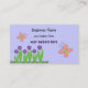 Un arrière - plan mauve doux accentue une rangée de fleurs violettes avec des feuilles et des tiges vert vif. Des papillons Whimsical roses flottent autour de nous. Customisez avec toutes vos informations d'affaires comme vous le souhaitez.