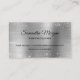Créez vos propres cartes de visite de parties scintillant argent brillant et de feuille satinée argentée. L'avant est doté d'un monogramme de script de calligraphie noir et blanc. Vous pouvez customiser la couleur et le style de police. Il y a de la place pour plus d'informations de contact sur le côté arrière. Un design féminin pour les wedding planners ou les techniciens de beauté. Tous les éléments graphiques et graphiques girly de ce design seront imprimés comme une photo numérique.