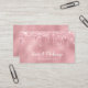 Elégant design de cheveux et de carte de visite de maquillage avec des gouttes de parties scintillant en or rose et d'élégantes polices de calligraphie.