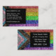 Des morceaux de parties scintillant colorés brillent sur l'arrière - plan de ce modèle de carte de visite entièrement personnalisable. Les couleurs du drapeau des gay pride LGBT brillent derrière une boîte noire ombragée avec du texte blanc. Parfait pour les maquilleurs, les artistes, les artistes, les artistes indépendants et les designers, les bénévoles pour les groupes à but non lucratif, les enseignants, les professeurs suppléants, les professeurs, etc., etc. Yassss~
