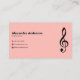 Un carte de visite simple avec un arrière - plan rose, des feuilles de musique, une étoile et un coeur. Le dos est livré avec des informations de contact entièrement personnalisables et une illustration de clé triable. Parfait pour les cours de musique, professeur de chant, entraîneur vocal, musicien interprète, etc.