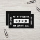 Un drôle minimaliste noir et blanc gag carte de visite cadeau pour le professionnel qui prend sa retraite. Le texte typographique peut être personnalisé avec votre propre message personnalisé. Si vous souhaitez rester en contact, vous pouvez ajouter vos coordonnées au verso de la carte.