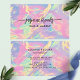 Faites une impression audacieuse avec ce carte de visite opal pastel à l'arc-en-ciel accentué par une parties scintillant dorée chatoyante. Doté de dégradés doux de rose, bleu, jaune et vert, ce design vibrant respire l'élégance et la créativité. Parfait pour les professionnels de la beauté, les coiffeurs, les maquilleurs ou toute marque féminine qui cherche à se démarquer. Ce design luxueux et unique allie professionnalisme et esthétique chic pour rehausser votre image de marque personnelle.