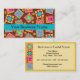 Faites une impression avec ce carte de visite pour votre entreprise de courtepointes, votre magasin ou votre guilde. Coordonner avec un support carte de visite correspondant. Ce carte de visite est décoré dans un bloc de courtepointes basé sur l'art original de Phyllis Dobbs. Le design comprend des blocs de courtepointe patchwork favoris tels qu'un cabine de rondins, un pinwheel, une étoile ainsi que des blocs uniques créés dans des couleurs dynamiques et vibrantes sur un arrière - plan brun chaleureux. Les couleurs sont rose fushia, orange, turquoise, bleu turquoise, jaune, rouge, marron et vert. Entièrement personnalisable pour toutes vos informations commerciales et de contact.