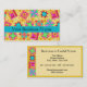 Faites une impression avec ce carte de visite pour votre entreprise de courtepointes, votre magasin ou votre guilde. Coordonner avec un support carte de visite correspondant. Ce carte de visite est décoré dans un bloc de courtepointes basé sur l'art original de Phyllis Dobbs. Le design comprend des blocs de surface patchwork favoris tels qu'un cabine de rondins, un pinwheel, une étoile ainsi que des blocs uniques créés dans des couleurs dynamiques et dynamiques sur un arrière - plan jaune ensoleillé. Les couleurs sont rose fushia, orange, turquoise, jaune, rouge et vert. Entièrement personnalisable pour toutes vos informations commerciales et de contact.