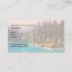 Cartes de visite avec une photographie pittoresque du paysage nordique comme toile de fond. Un lac aux couleurs turquoise avec une forêt de pins en arrière - plan et un ciel brumeux lui donnant une qualité mystique magique.