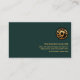 Au-dessus de la feuille, les détails sont au mur droit dans une couverture vert foncé. Le logo or est en haut, suivi du nom d'entreprise, des coordonnées et d'une légende de slogan pour faire connaître vos services.