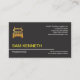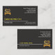 Une couverture gris foncé accentuée par une ligne de démarcation blanche et fine à la base de la carte ; Voici votre nom prestigieux et votre titre de travail. Vers la droite de ceci est une option de slogan pour vous de faire la publicité de vos services. En haut du toit de la carte se trouvent le nom d'entreprise et les coordonnées avec le faux logo de semi-camion en or à l'extrémité opposée.