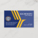 Une frise créative aux teintes jaunes, façonnée en aigle abstrait. Il délimite la couche bleue foncée gauche contre la face plus claire sur sa droite. La frontière de l'aigle symbolise un mouvement vers l'avant, un mouvement vers le succès. Dans le coin supérieur, vous trouverez votre nom prestigieux et le titre de votre emploi avec une légende de slogan près de la ligne de base. Vous pouvez modifier la légende en fonction de vos besoins de service. Le logo du globe doré que vous pouvez utiliser avec son nom d'entreprise et ses coordonnées se déplace vers la gauche.