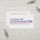 A bold and modern business card template designed for exterminators and licensed pest control professionals. The front features a clean, minimalist layout with strong typography and a custom insect-in-crosshairs graphic, giving it a sleek and highly professional look. Ideal for solo technicians or small teams who specialize in targeted pest removal and want to make a strong first impression.