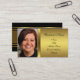 Elégant modèle de carte de visite photo noir et or. Customisez cette carte noire et or classe avec votre photo et informations professionnelles. Ajoutez vos détails à l'avant et/ou à l'arrière en cliquant simplement sur le bouton orange "Customisez-le !" pour commencer à ajouter vos détails d'événement, le style de police, la taille et la couleur de police et le libellé. Veuillez noter que tous les modèles d'invitation que vous trouverez sur Zazzle sont des graphiques imprimés sur papier plat stock sans bijoux, arcs, surélevés, gaufrés, ou pièces ou pièces ajoutées.