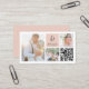 Cartes de visite chic et élégant pour photographes disposent de quatre de vos meilleures photos arrangées dans une mise en page collage, avec vos initiales ou monogramme et nom d'entreprise dans la calligraphie moderne et le lettrage de bloc, et un code QR personnalisable. Ajoutez vos coordonnées complètes à l'arrière sur un arrière - plan rose vif.