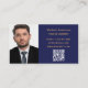 Un arrière - plan bleu marine classique. Personnalisez et ajoutez le logo de votre entreprise et un texte à l'avant. Lettres d'or Retour : Modèles pour votre propre profil photo, nom, titre, numéro de téléphone et code QR.