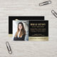 Devenez un professionnel avec ce carte de visite d'agent de signature de notaire élégant en noir et or. Présentant une conception moderne, la carte met en évidence votre nom, vos références et vos services, tels que la signature de prêts, les fiducies et les avis de procuration. Une section photo personnalise votre image de marque. Les accents d'or haut de gamme véhiculent la sophistication et la confiance, ce qui le rend parfait pour établir des connexions dans les secteurs de l'immobilier, du droit et de la finance.