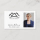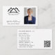 Photo de la tête de l'agent immobilier carte de visite avec logo de maisons stylisées et typographie merveilleuse en noir et blanc classique. Ajoutez votre photo, votre nom de société, votre nom personnel et votre titre au recto et vos détails importants, y compris un code QR, au verso. Cette carte se distingue par son style simple mais moderne.
