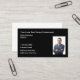 Un simple modèle de design de portrait photo de cadres cartes de visite créé avec un modèle d'espace réservé photo que vous pouvez remplacer par votre propre portrait d'entreprise ou graphique. Conçu pour un dirigeant de l'industrie du courtage, du courtier, de l'assurance ou de la santé.