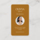 Carte de visite moderne et élégant avec un code QR pour les médias sociaux, photo, slogan, détails d'enquête et liens de médias sociaux. Les couleurs primaires utilisées en modèle sont la terre cuite et le blanc. Ce modèle tout-en-un polyvalent peut être mis à jour facilement. Remplacez la photo circulaire par la photo de profil ou le logo de l'entreprise. Votre image sera ajustée automatiquement pour s'adapter à une forme circulaire. Le design a un look et une atmosphère frais et chic.