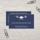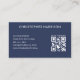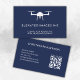 Un carte de visite minimal adapté à un photographe pilote de drone aérien. Le design moderne et élégant comprend un logo de drone blanc sur le devant avec un arrière - plan de marine et espace pour votre nom d'entreprise et slogan. Au verso votre nom, les coordonnées et un code QR. Les clients pourront facilement accéder à votre site web pour voir vos images.
