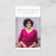 Une élégante et sobre carte de visite professionnelle. Un choix parfait pour les agents immobiliers et les agents immobiliers. Ces cartes de visite chics présentent votre photo avec votre nom ou nom d'entreprise et votre entreprise ou commerce en dessous. Personnalisez-vous avec une grande photo unique sur le devant et ajoutez vos coordonnées complètes à l'arrière.