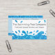 Ce carte de visite présente une image d'une eau bleue claire qui éclate sur le devant, avec des vagues dans la partie inférieure et des éclaboussures venant de l'eau. Un exemple de nom de société ou d'entreprise est ajouté que vous pouvez personnaliser pour inclure votre nom ou message. La partie arrière de la carte comporte une bordure arrière - plan de l'eau correspondante à l'avant avec les coordonnées.