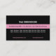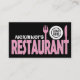Plat de couverts en texte de restaurant cartes de visite accrocheurs. Un modèle de carte de visite cool, avec le mot RESTAURANT, le nom du propriétaire, une assiette, une fourchette et un couteau en rose et blanc sur arrière - plan noir. Vous pouvez télécharger votre logo sur la plaque, ajouter votre monogramme ou le supprimer.