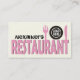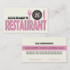 Plat de couverts en texte de restaurant cartes de visite accrocheurs. Un modèle de carte de visite cool, avec le mot RESTAURANT, le nom du propriétaire, une assiette, une fourchette et un couteau en rose et noir sur l'arrière - plan d'ivoire. Vous pouvez télécharger votre logo sur la plaque, ajouter votre monogramme ou le supprimer. Changez la couleur arrière - plan en blanc ou ce que vous voulez.