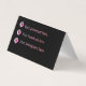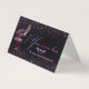 tarjeta plegable personalizada con datos personales del negocio por la parte atrás, textura negra y brillo multicolor.