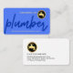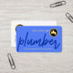 A light blue cover features a dark blue "plumber" signage near the base of the card. Just below this is a slogan caption which you can change. Towards the top corner lies your prestigious name and a gold faucet logo you can use.