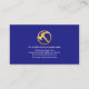 Une couverture bleu vif présente une conception créative de toiture en faux or. Ce design sur le toit abrite un logo de marteau d'or que vous pouvez utiliser. Près de la base de la carte, juste à côté de la brosse à rouleaux dorés tient votre nom d'entreprise et ses coordonnées.