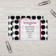 Un carte de visite comportant un arrière - plan noir de point de polka au-dessus de blanc avec l'équilibre rose. Texte rose et noir au-dessus de blanc pur. Personnalisez avec votre information. Caractéristiques de bord opposé assortissant l'arrière - plan de point de polka. Le logo de l'école rose à l'intérieur du cercle a formé le cadre rose.
