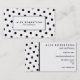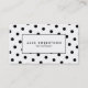 Un carte de visite monochrome simple et classique comportant un boîtier blanc décrit dans le noir au centre pour votre nom et profession. L'arrière - plan est une conception de point de polka avec les points noirs sur un arrière - plan blanc. La conception est répétée sur le dos avec plus d'espace pour vos détails.