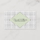 Simple et sophistiqué chic Pois moderne Carte de visite avec une couverture en forme de triangle vert clair et un délicieux arrière - plan pois à motifs noir et blanc. Cette carte de profil géométrique classique et minimaliste est facile à customiser avec vos détails professionnels. Ce design motif polyvalent est parfait pour une variété de types d'entreprises. Pour plus d'options de personnalisation, cliquez sur Personnaliser.