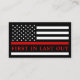 Mince Red Line Cartes de visite pompier - Firefighter maltese croix et USA American flag design dans les couleurs du drapeau Firefighter, dessin en détresse . Parfait pour tous les pompiers, et les services d'incendie. Avant- Personnalisez avec le nom, le service, l'adresse et les coordonnées. Retour- 'premier en dernier dehors'. DROIT D'AUTEUR © 2020 Judy Burrows, Black Dog Art - Tous droits réservés. Service d'incendie Maltese Cross Red Line Carte de visite pompier