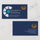 Au-dessus, les détails sont au mur droit avec le logo or en haut suivi du nom de l'entreprise, des coordonnées et du slogan pour faire connaître vos services.