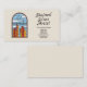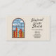 Cartes de visite avec l'illustration dessinée à la main d'un vitrail avec un ciel bleu, des nuages blancs, des bâtiments rouges et jaunes : parfait pour les artistes en vitrail, mais aussi design d'intérieur, fleuriste, artiste designer, wedding planner...
