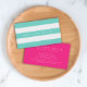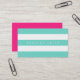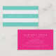 Carte De Visite Préppy Turquoise et Blancs avec rose