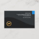 Au verso, dans un thème semblable de conception, vous avez une étiquette bleue saisissante au coin supérieur droit. C'est d'accentuer la conception. L'information de toute la carte se reposent près de cet espace. La raison sociale vient après, suivi de vos détails d'affaires. Enfin vous avez une option pour annoncer votre type de services. Près du fond, il y a l'icône familière d'or de faux. Si vous décidez de télécharger une photo, les mesures sont le pix 1.000 x 1.000.