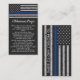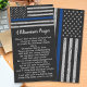 Mince Blue Line Policeman's Prayer Card Bulk- USA Drapeau américain dans les couleurs Police Drapeau, design rustique sur le faux cuir. Parfait pour tous les policiers et agents de la force publique. Ces cartes de prières de la police sont de la taille d'un porte-monnaie, parfait pour les services de police, ou à inclure dans les cartes de remerciement aux policiers, et les cadeaux de fin d'études de l'académie de police. Visitez notre collection pour les cartes de prière de la police et les cadeaux de prière des policiers. DROIT D'AUTEUR © 2020 Judy Burrows, Black Dog Art - Tous droits réservés. Prière du policier Rustic Faux Carte de visite de police en cuir