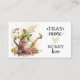 Le carte de visite représente un design d'aquarelle nature avec un adorable petit oiseau assis sur une canette d'arrosage patinée, entouré de fleurs de jardin et de feuilles. Il présente une citation inspirante chrétienne, "Pray more Worry less."