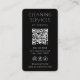 Perfect for house cleaning services, apartment cleaning, office cleaning, Airbnb turnover cleaning, and domestic housekeeping, this card includes space for your business name, phone number, address, social media icons, website, and a QR code for quick contact or online booking. The sleek black background enhances readability and gives your brand a polished, premium feel.