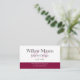 Ce Carte de visite professionnel de Monogramme Bourgogne & Blanc serait idéal pour les designers, les décorateurs d'intérieur, les comptables, les fiscalistes, les conseillers/conseillers financiers, les agents immobiliers et bien d'autres professionnels. Vous pouvez modifier le texte en police, couleur, taille et emplacement en cliquant sur le bouton orange "CUSTOMISER IT". Ce carte de visite est disponible en différentes tailles et/ou couleurs. Merci de votre visite. Autres couleurs disponibles dans cette conception