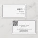 C'est Professional Elegant Moderne Noir & Blanc Simple Carte de visite Personnalisable. Nom de script moderne chic minimaliste avec ton design de bordure sur couleur éditable arrière - plan blanc, personnalisez votre propre nom et titre de travail, informations d'affaires et code QR optionnel sur le dos, simple et élégant, grand carte de visite de luxe professionnel.Il est idéal pour les agents immobiliers, avocats, courtiers, comptables, revendeurs, avocats et professionnels d'entreprise.