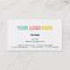 Des cartes de visite professionnellement faits avec votre propre logo ont pu être eus en quelques jours ! Téléchargez simplement votre dossier de JPEG ou de png et et commencez à customiser avec votre information d'affaires. Votre logo est vivement présenté sur le dessus avec votre ensemble de nom de la société et d'information dans des oeil d'un caractère modernes. Ajoutez le texte supplémentaire ou le graphique sur le dos sans frais supplémentaires. Personnalisez la carte pour chaque employé. Ordre en vrac et des économies.